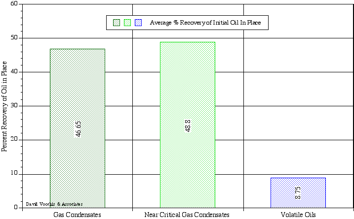 for gas condensates, retrograde gas condensates and volatile oils....The bar chart recoveries are from a numerical simulation study that used a 2-dimensional, radial numerical