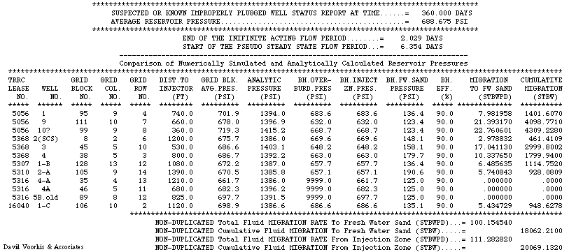Figure 9.7 : Computer output table of possible oilfield brine migration rates