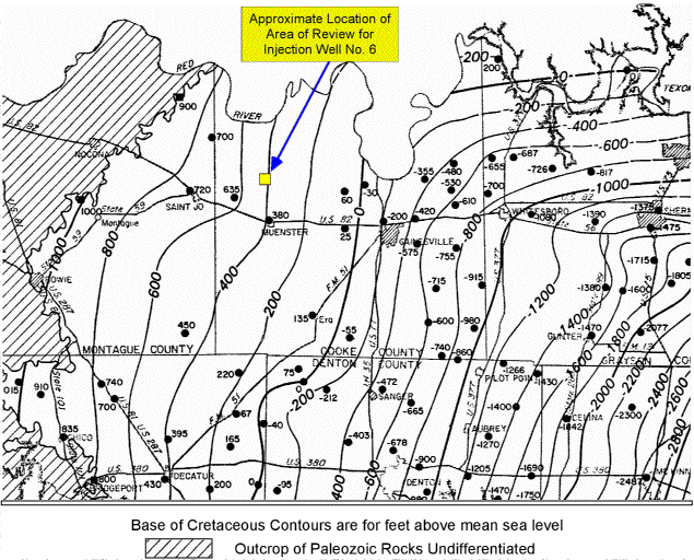 location of the Area of Review for Injection Well No. 6. |